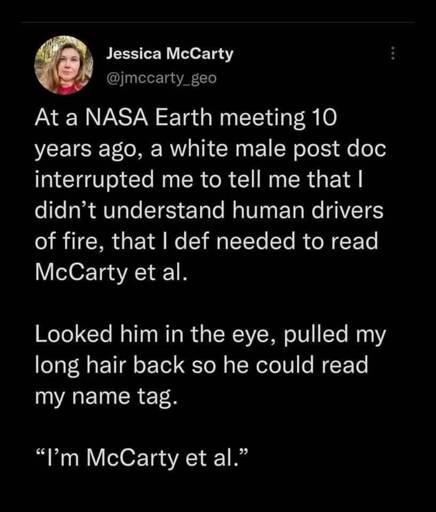 Yet somehow it is true that the vast majority of smug people who are confidently wrong are white males. Maybe someday we can have equality in the ratio of being smug while confidently wrong.