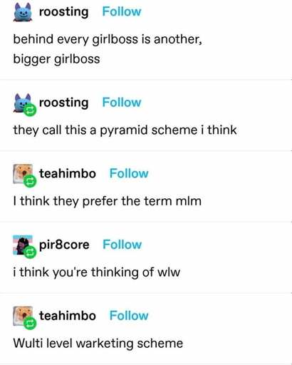 minus-squaregnutrino@programming.devlinkfedilinkEnglisharrow-up13·5 months agoWomen level womaning scheme