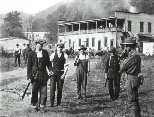 Miners then often lived in company towns, paying rent for company-owned shacks and buying groceries from the company-owned store with “scrip.” Scrip wasn’t accepted as U.S. currency, yet that’s how the miners were paid. For years, miners had organized through unions including the Industrial Workers of the World (IWW) and United Mine Workers of America (UMWA), leading protests and strikes. Nine years prior to Blair Mountain, miners striking for greater union recognition clashed with armed Baldwin-Felts agents, hired mercenaries employed by coal companies to put down rebellions and unionizing efforts. The agents drove families from their homes at gunpoint and dumped their belongings. An armored train raced through a tent colony of the evicted miners and sprayed their tents with machine gun fire, killing at least one. In 1914, those same agents burned women and children alive in a mining camp cellar at Ludlow, Colorado.