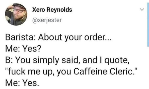 Drops a crystal of meth into your drink, stirs it, then grabs the canister of cocaine and sprinkles the drug on your latte.