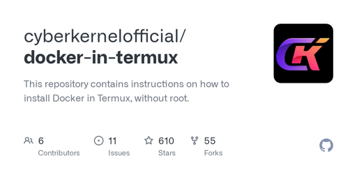 WhiteOakBayou@lemmy.world to Selfhosted@lemmy.worldEnglish · 1 month agoGitHub - cyberkernelofficial/docker-in-termux: This repository contains instructions on how to install Docker in Termux, without root.github.comexternal-linkmessage-square9linkfedilinkarrow-up189arrow-down11file-text