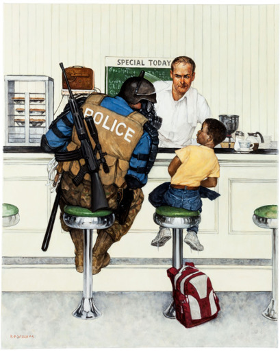 A lot of people know about the very first piece he did when he left the post which was the The Problem We All Live With which depicts Ruby Bridges walking to school under federal protection.