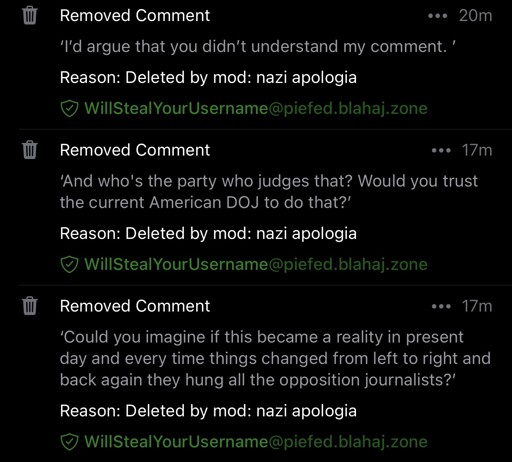To be clear I don’t care that you removed the comment I care that you put Nazi apologia on my mod log when I’m very anti-Nazi.