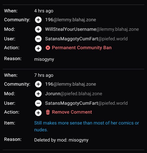 Check the mod log, even on their new Piefed one it’s growing. Their world one was even longer.